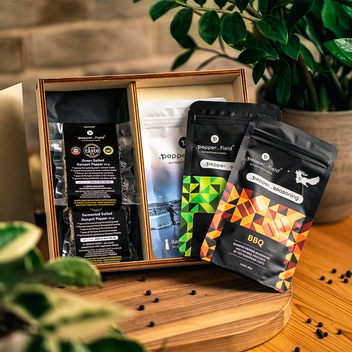 2+1: Fermented and green Kampot  pepper, coarse-grained Kampot salt