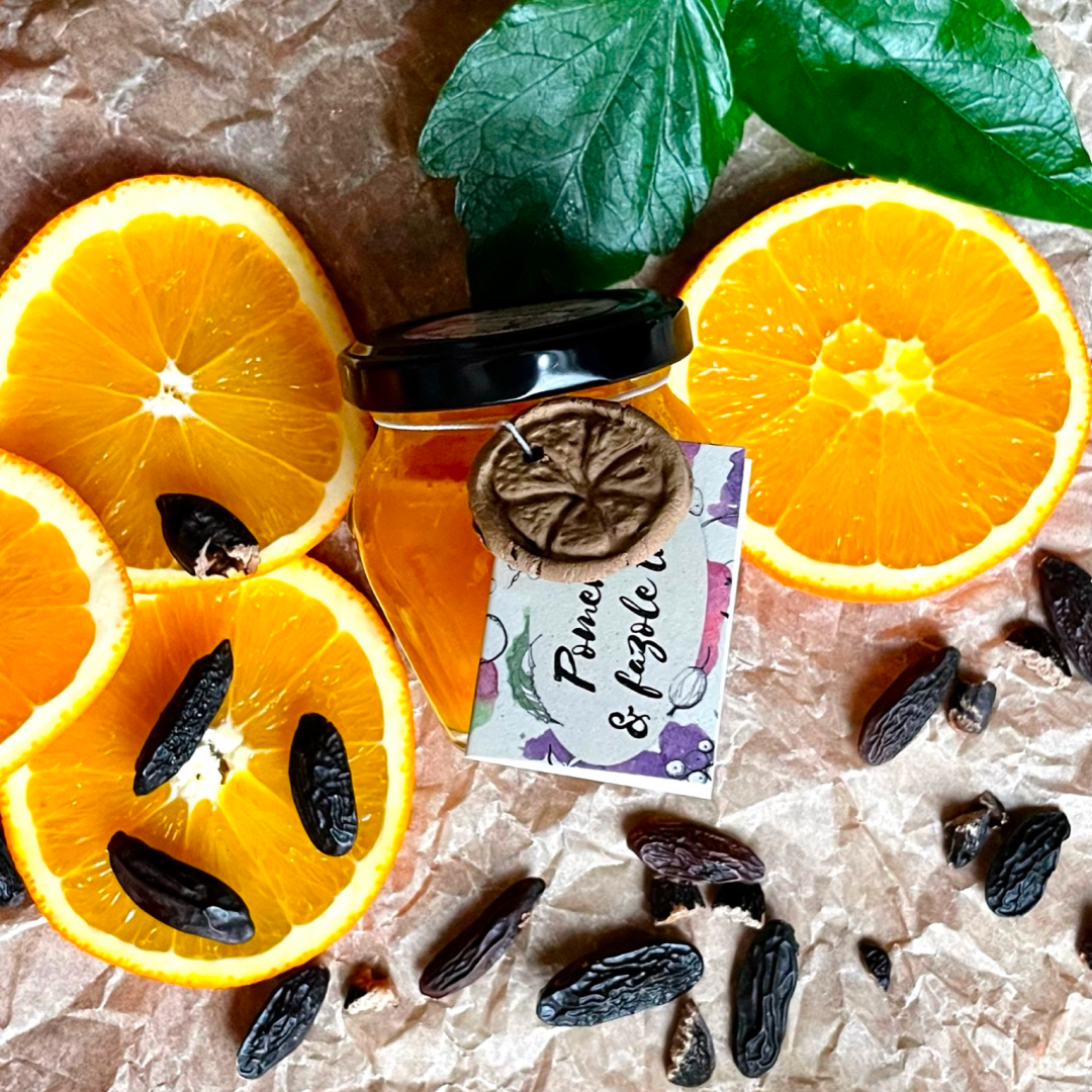 Composition : Oranges, sucre, pectine d'agrumes (agent gélifiant), jus de citron, fève tonka.