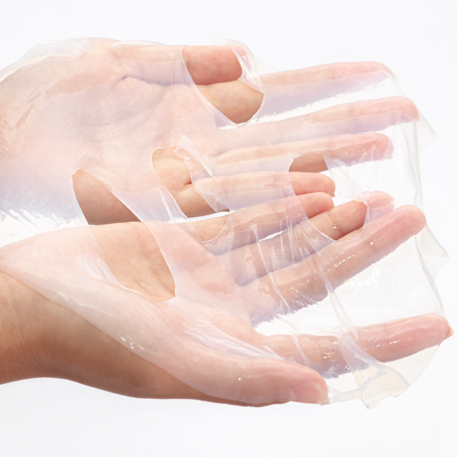 4. Gently remove the mask and massage the unabsorbed lotion into the skin. Dispose of the biocellulose mask after use into mixed waste or bio-waste.