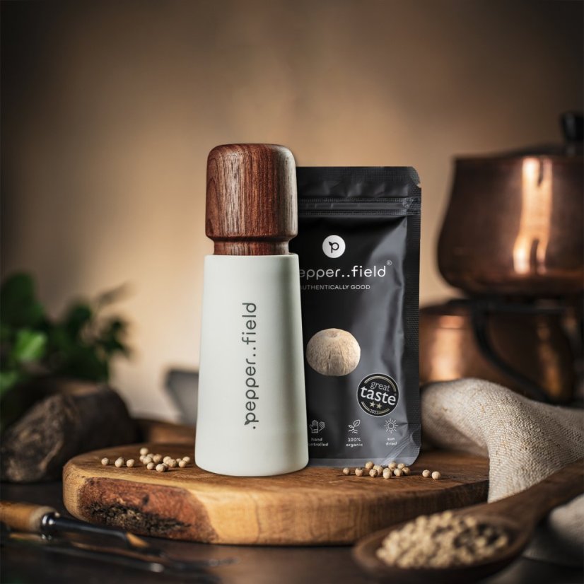 • Prírodný škandinávsky mlynček na korenie (17cm) - balíček