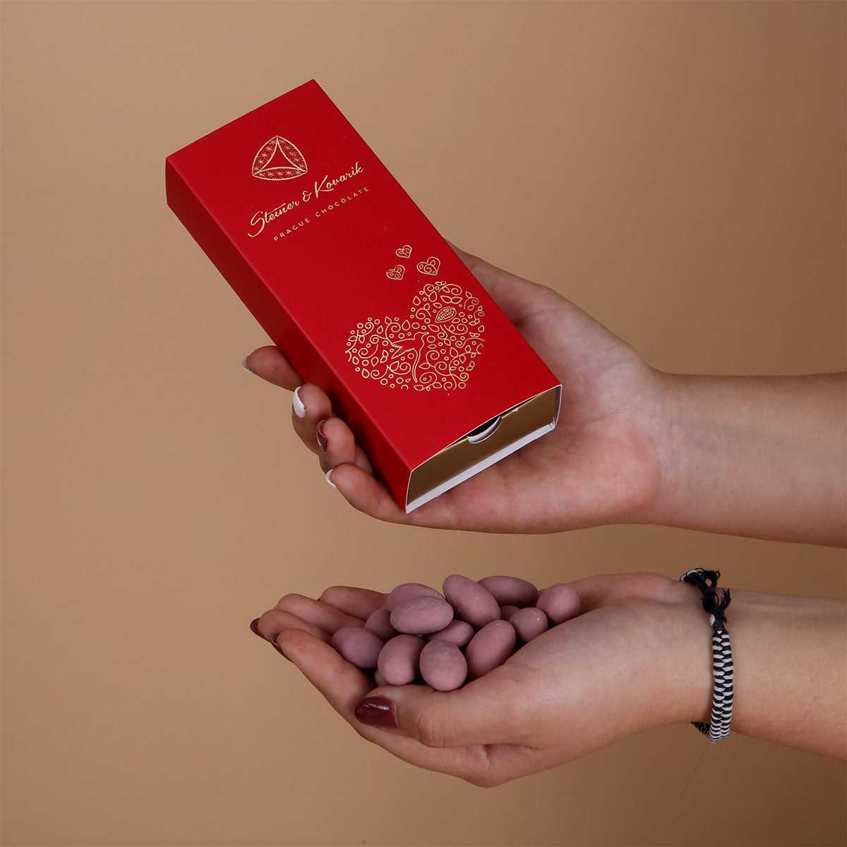 Mandle v čokoláde s prírodnou čerešňovou arómou sú nežnou, romantickou novinkou v našom sortimente.